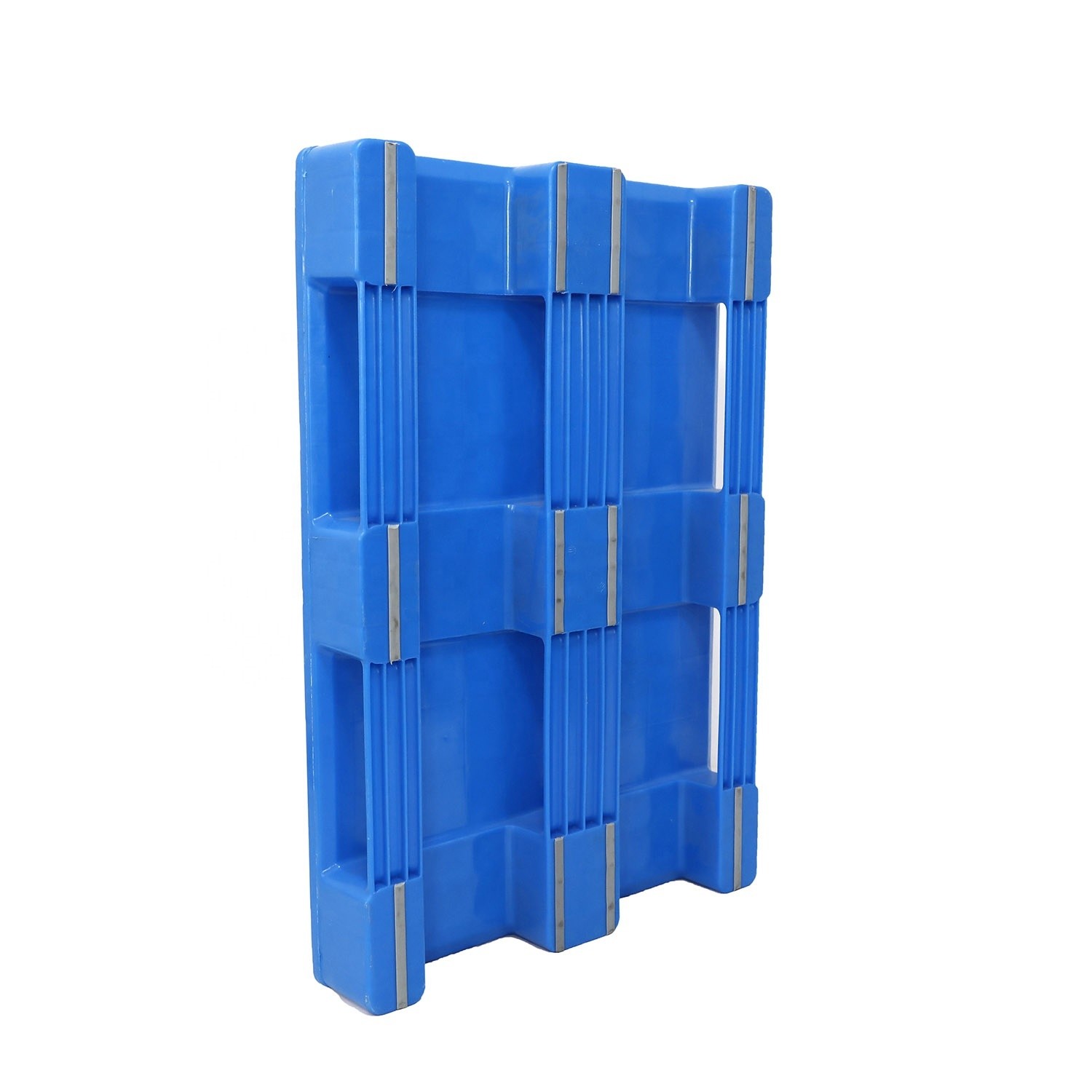 1) Paletes de plástico com 3 corredores no fundo são amplamente utilizados para transporte e armazenamento.