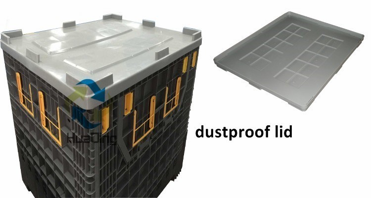 1) A vida útil é 10 vezes mais longa do que os recipientes de madeira 2) Muito mais leves do que os contentores de madeira e aço, por isso são eficientes no processo de transporte e armazenagem 3) Reciclável e lavável 4) Certificados: ISO 9001, ISO 14001, ISO/TS16949 e certificado de qualidade alimentar |