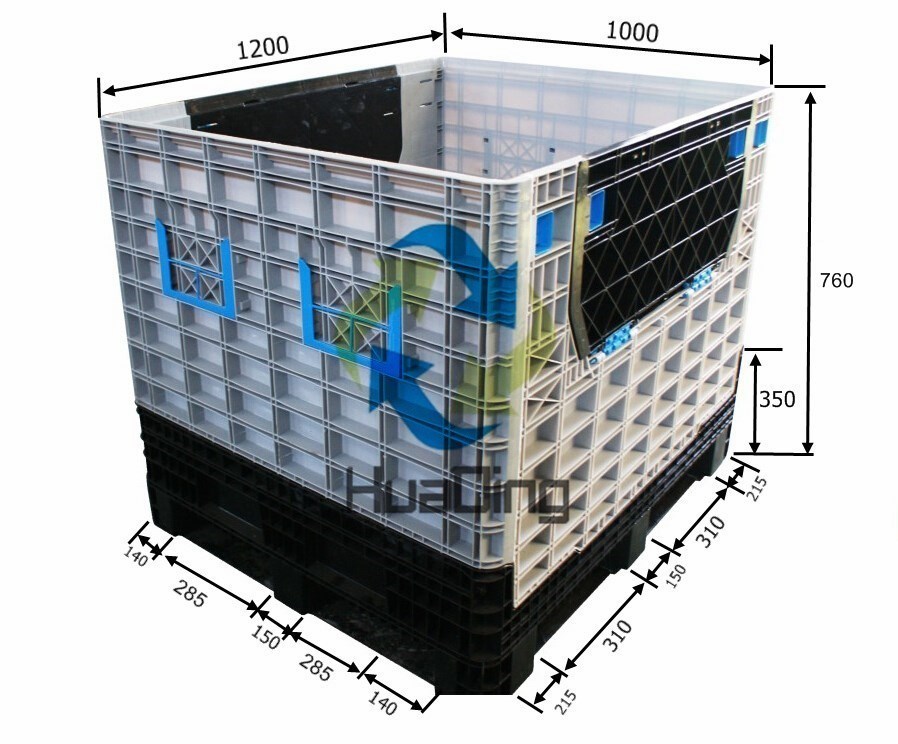 Caixa de paletes de plástico industrial grande recipiente de plástico dobrável recipiente dobrável